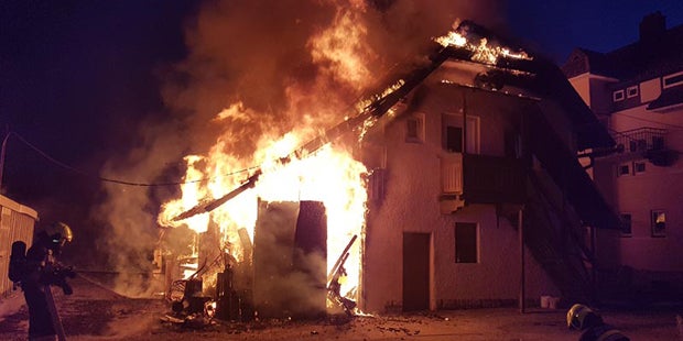 Kärnten. In Villach-Landskron brach am Sonntagabend um 20.30 Uhr aus noch unbekannter Ursache ein Brand in einem Wirtschaftsgebäude aus. Da das Haus im dicht bebauten Gebiet steht, wurde Großalarm ausgegeben. 120 Feuerwehrmänner waren im Einsatz und konnten ein Übergreifen der Flammen auf das angrenzende Mehrparteienhaus verhindern. Im brennenden Stall befand sich ein Pferd, das gerettet werden konnte.