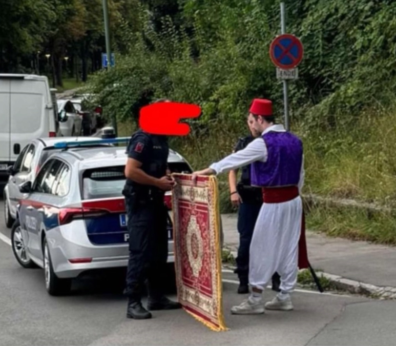 Deutlich zu sehen ist, die Polizei nahm den Teppich ganz genau ins Visier. Scheint so, als hätte der nicht der Norm entsprochen. Wie es weiterging nach der Polizeikontrolle ist unklar. Wahrscheinlich gings für den Aladin zu Fuß weiter.