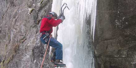 Uhr mit fünf Mann in den Eisfall ein. Im obersten Bereich des Eisfalls