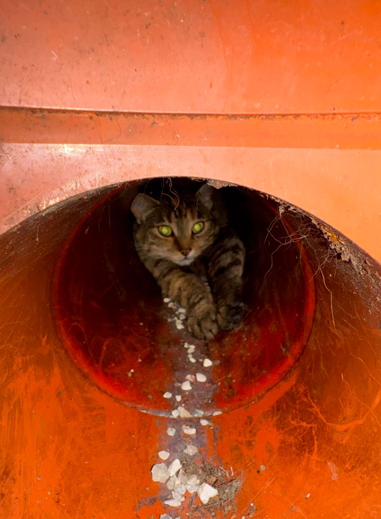 Nachdem der Oberkörper den Rohrbogen passiert hatte, konnte das Tier schließlich behutsam von Hand befreit werden. Die Katze überstand den Unfall samt Rettung den Umständen entsprechend gut und wurde vorsorglich einem Tierarzt überstellt.