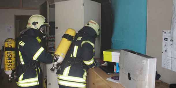 Feuer im Klassenzimmer vor Eintreffen der Einsatzkräfte gelöscht.
