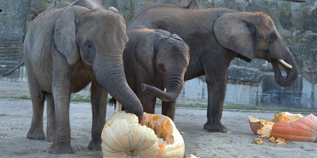 „Kürbisse sind bei unseren Elefanten eine beliebte Abwechslung auf dem Speiseplan. Besonders beeindruckend ist es, wie sie diese riesigen Exemplare mit dem Kopf, den Stoßzähnen oder den Füßen knacken, um an das saftige Innere zu gelangen“, so Tiergartendirektorin Dagmar Schratter.