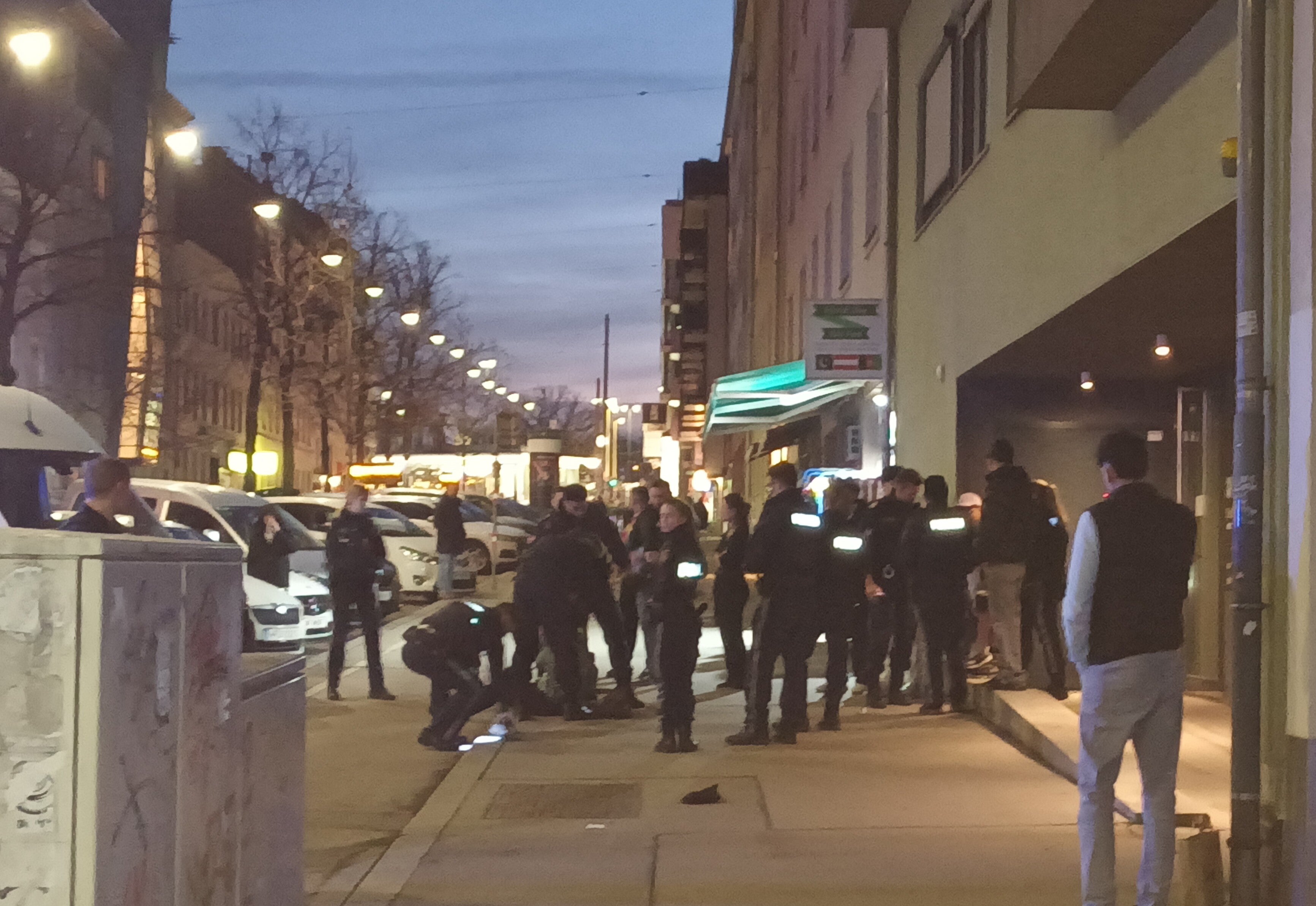 Hier wird der aggressive Junkie, ein 44-jähriger Tschetschene, festgenommen.