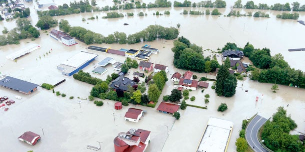 Überschwemmungen im Bezirk Baunau (OÖ).