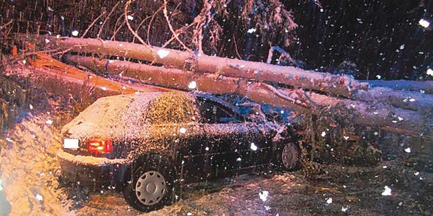 Vier riesige Fichten krachten auf das Auto zweier junger Frauen.