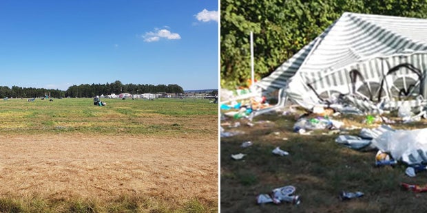 "So viele gute Zelter (außer die, die extra noch zerschnitten werden, damit sie niemand mehr verwenden kann). So viele intakte Campingsessel", schreibt ein Twitter-User über den hinterlassenen Müll am Festival-Gelände.