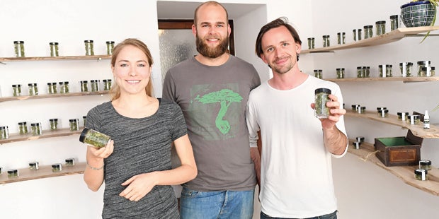 Dem Betreiber-Trio Sofie, Juri und Sebastian geht es aber nicht um den THC-Rausch, für den Cannabis bekannt ist, sondern um das ebenfalls in Cannabis enthaltende CBD. Bis zu 6 % des als schmerzstillend geltenden Stoffs sind in den Blüten. Typische Kiffer sind nicht die Kunden des Magu. "Es kommen Schmerzpatienten", sagt Sofie. Beraten dürfe sie sie aber nicht. "Wir schicken sie dann zu einem Arzt." Damit sind sie rechtlich auf der sicheren Seite.