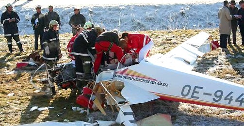 "Der Motorsegler war kurz nach dem Start nach links abgetrudelt und streifte dann vermutlich mit einer Tragfläche einen Hangar. Dann prallte er gegen die Böschung eines Wassergerinnes und überschlug sich mehrere Male", schilderte der Kriminaldienstreferent vom Bezirkspolizeikommando Zell am See, Johann Lengauer, den Unfallhergang. Die Schulmaschine der Alpinen Segelflugschule Zell am See blieb schwer beschädigt auf einer Wiese des alten Flugplatzes liegen.