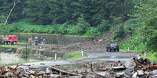 Sieben Meter hohe Mure in Salzburg: Straßen und Bahn gesperrt. Zwei Tote in Tirol.
