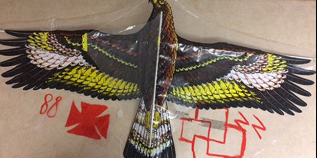 Auf dem Flugdrachen über der Innenstadt befanden sich unter anderem ein Hakenkreuz und SS-Runen.