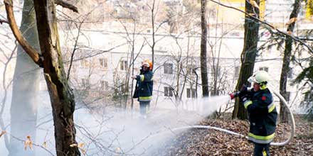 Löschmannschaft rasch zur Stelle. Über 100 Quadratmeter des nach dem Winter