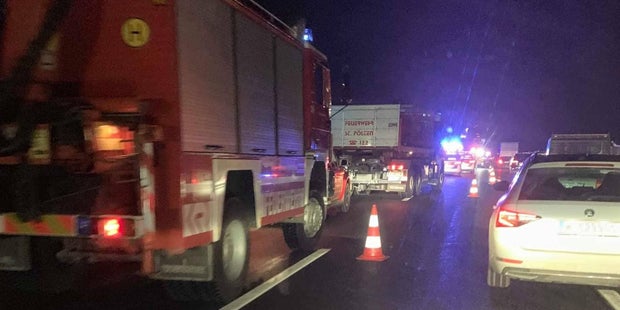 Der Auffahrunfall ereignete sich den Angaben zufolge auf der Überholspur. Während der Aufräumarbeiten war zunächst nur ein Fahrstreifen für den Verkehr geöffnet. Nach rund zwei Stunden musste die A1 ab Knoten St. Pölten schließlich für kurze Zeit komplett gesperrt werden. Die Feuerwehr St. Pölten war unter anderem mit vier Einsatzfahrzeugen und zehn Mann vor Ort.