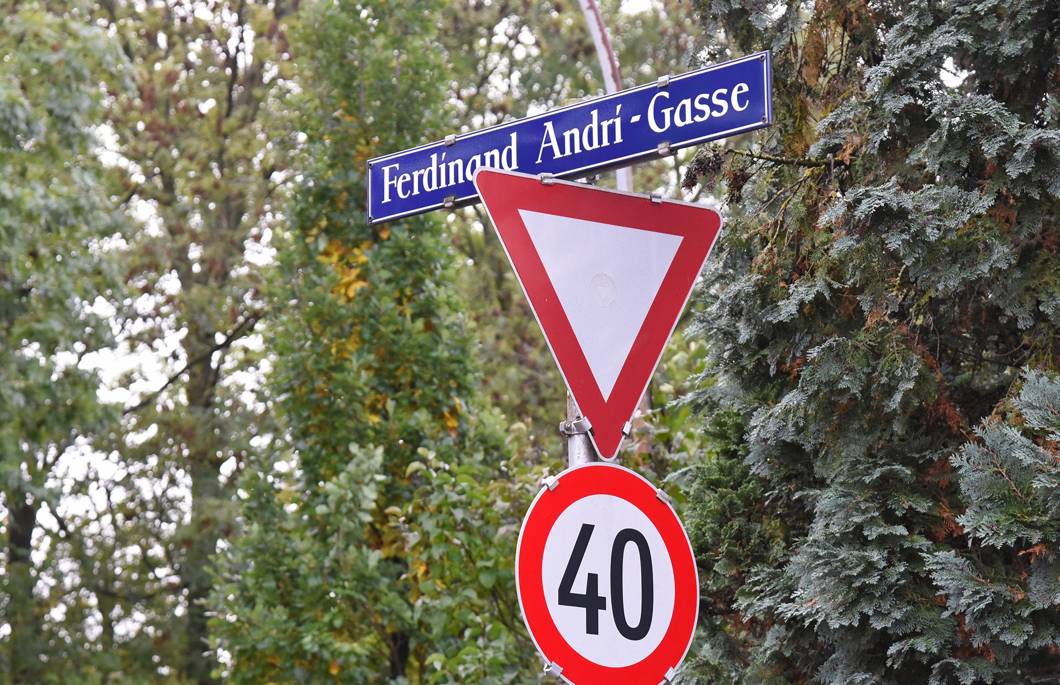 Sowohl negativ, aber auch positiv besetzte Straßennamen, wie etwa die Ferdinand-Andri-Straße erhalten nunmehr Zusatztafeln, die über die jeweilige Persönlichkeit mittels QR-Code informieren. Ferdinand Andri gilt unter Kunsthistorikern zwar als bedeutender Bildender Künstler, war aber Mitglied der NSDAP.