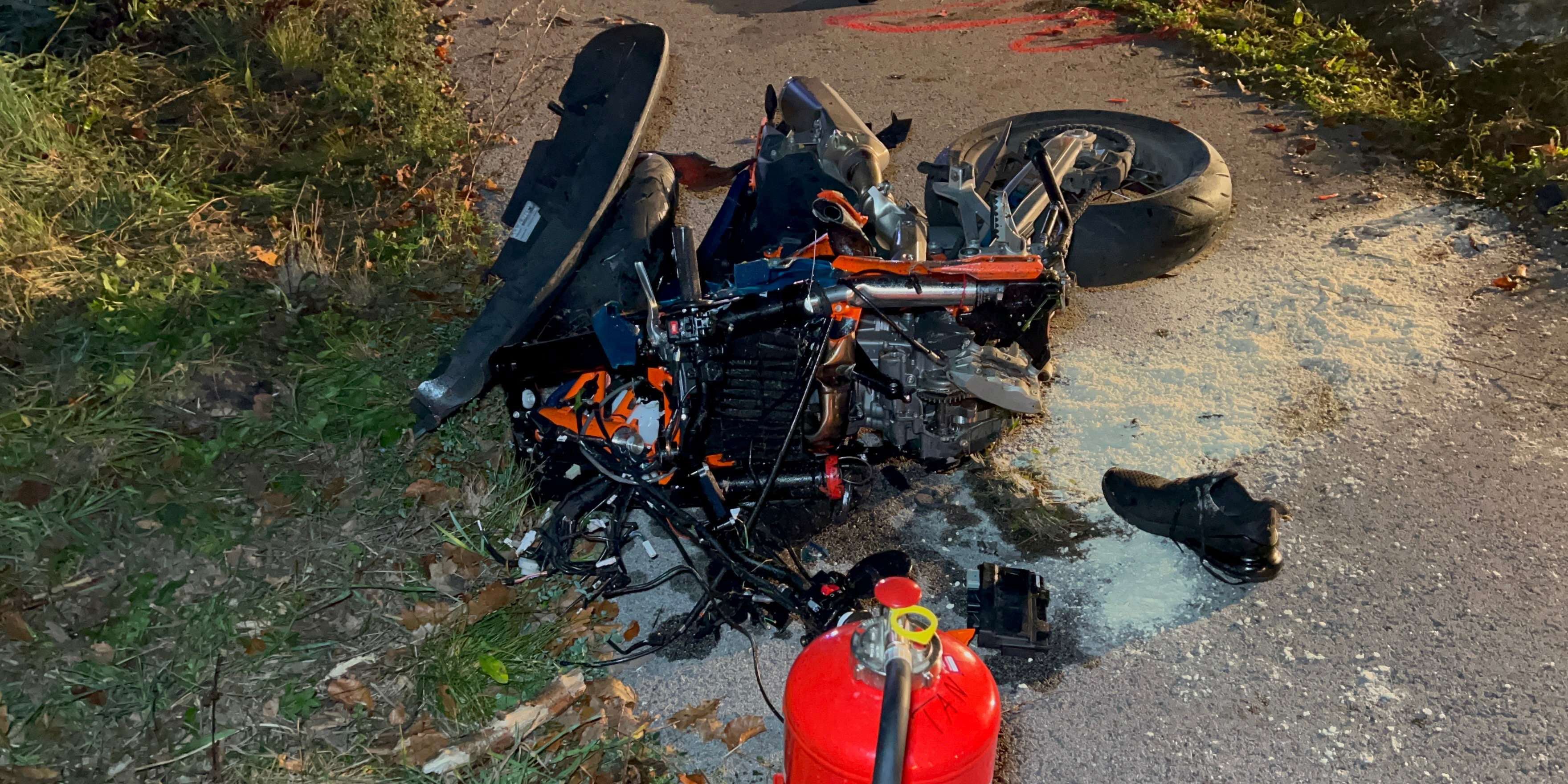Ein 20-jähriger Motorradfahrer geriet aus noch nicht geklärter Ursache viel zu weit nach links und krachte frontal mit einen entgegenkommenden Klein-Lkw.