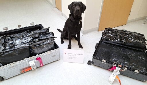 Diensthund "Jerry" hat bei Kontrollen am Dienstag auf dem Flughafen Wien in Schwechat (Bezirk Bruck an der Leitha) auf zwei Koffer aufmerksam gemacht, in denen sich 43,5 Kilo Cannabiskraut befanden. Ein 22-Jähriger, auf den die Gepäckstücke eingecheckt waren, wurde festgenommen. Der Bulgare war teilweise geständig und wurde in die Justizanstalt Korneuburg eingeliefert, teilte die Landespolizeidirektion Niederösterreich am Mittwoch in einer Aussendung mit.
