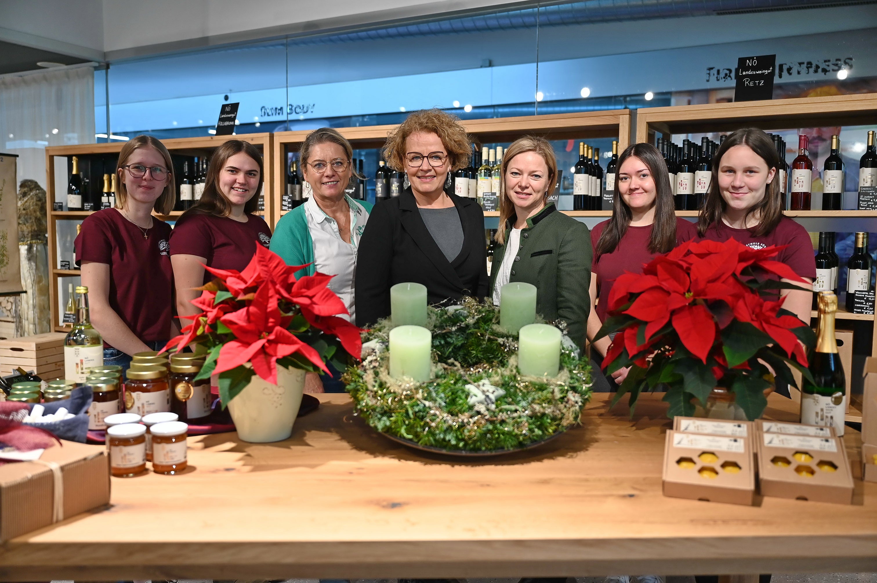 "Die zwölf Landwirtschaftlichen Fachschulen sind im neuen Landhauskeller mit ihrer gesamten Produktpalette an einem Standort vereint. In der Adventzeit präsentiert sich das ansprechende Verkaufslokal mit inspirierender Kreativität und besonderen Geschenkideen für Weihnachten“, betont Bildungs-Landesrätin Christiane Teschl-Hofmeister (ÖVP). "Unter dem Motto ‚Verkauf macht Schule‘ bieten hier die Fachschulen ein auf die Jahreszeit abgestimmtes Programm, bei dem auch die Schülerinnen und Schüler im Einsatz sind. Dabei werden selbst erzeugte Spezialitäten präsentiert und die Jugendlichen können dabei wertvolle praktische Erfahrungen sammeln“, so die Landesrätin.