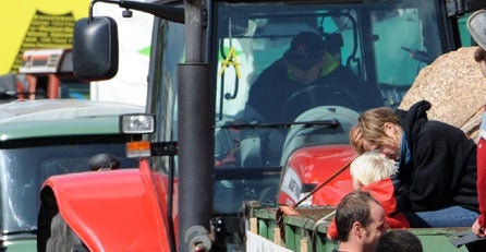 16 Personen auf Traktor