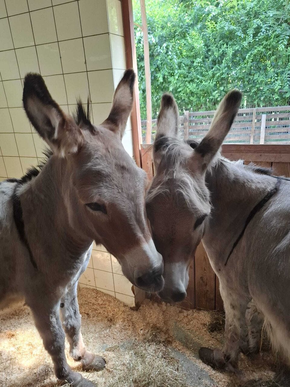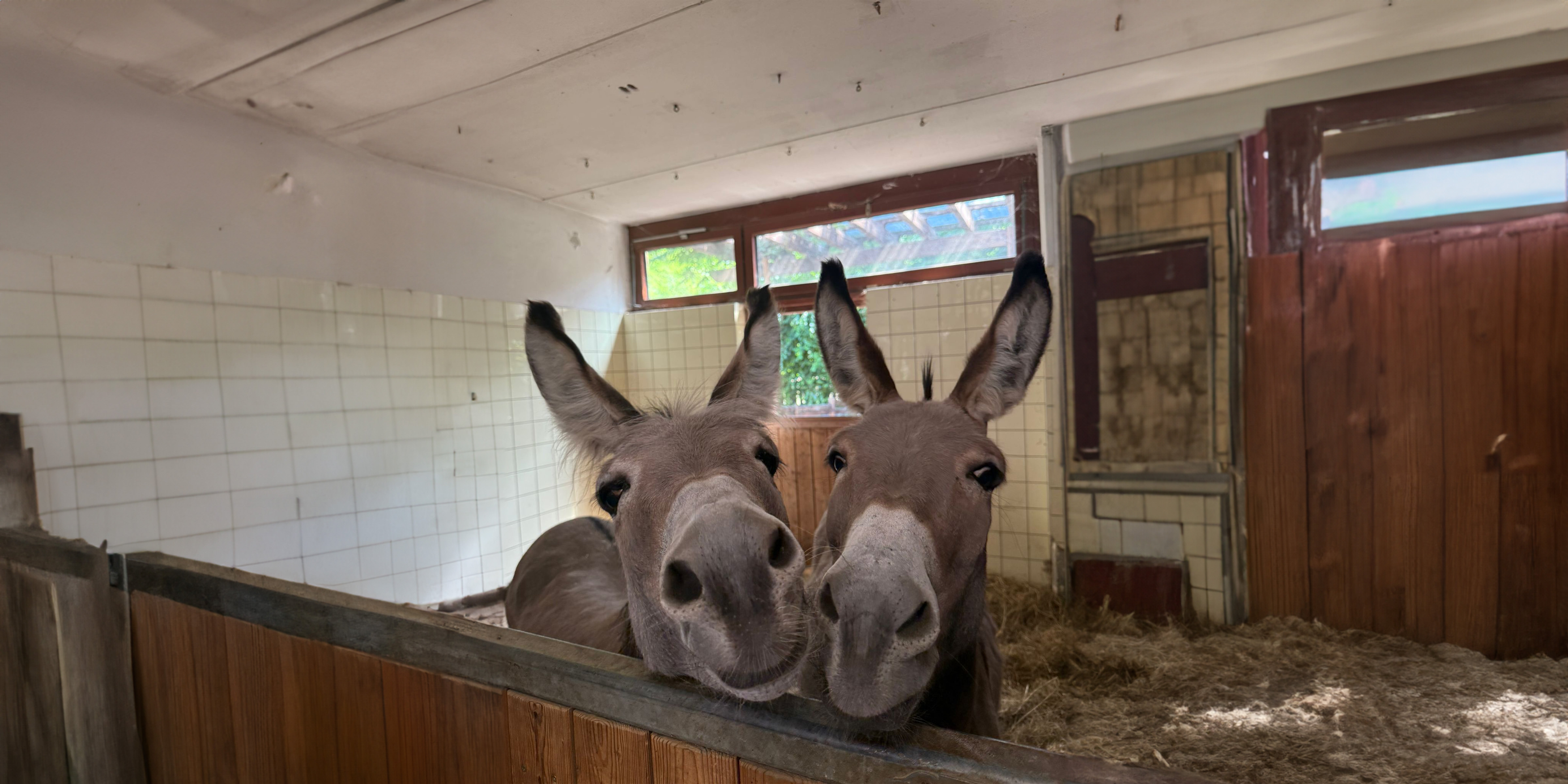Dieses Mal prügeln sich Asterix und Obelix nicht mit Römern, sondern schleppen die Last einer langen Vernachlässigung. Die beiden Esel mit großen Namen und trauriger Vergangenheit wurden von Tierschutz Austria gerettet und leben nun in Vösendorf.