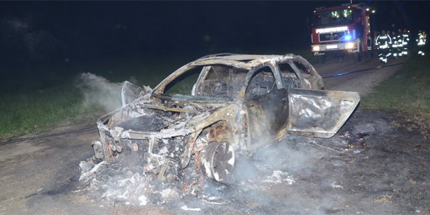 Bei einem der Fahrzeuge soll es sich um einen gestohlenen Pkw handeln, diesen setzten die Täter an einem Feldweg neben der A2 in Brand, bevor sie zu Fuß flüchteten.