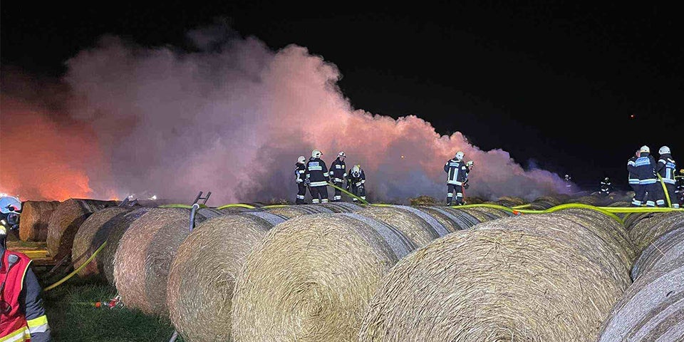 Insgesamt 90 Feuerwehrleute standen am Samstagabend im Einsatz und versuchten, das Feuer im Bezirk Gänserndorf unter Kontrolle zu bringen. Aus bisher ungeklärten Gründen hatten Strohballen, die auf einem Feld gelagert wurden, Feuer gefangen. Nach fast sechs Stunden und konnten die 140 brennenden Strohballen separiert und das Feuer unter Kontrolle gebracht werden.