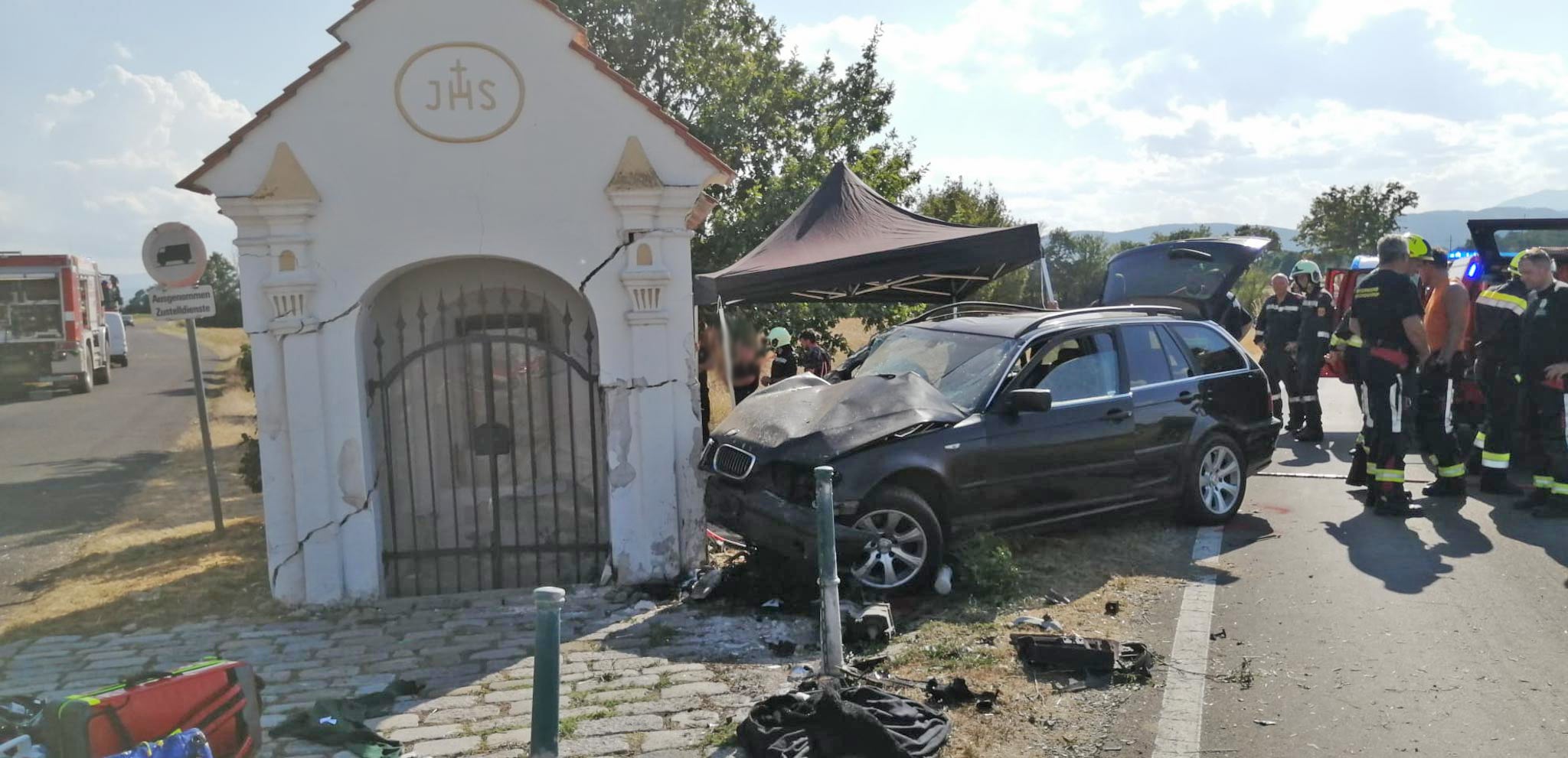 Insgesamt drei Menschen starben auf niederösterreichischen Straßen in Autos am Mittwoch. Auch ein 17-jähriger BMW-Beifahrer überlebte einen Frontal-Crash mit einer Kapelle nicht. Der mit drei Insassen besetzte Wagen, der Lenker ein 21-jähriger Rumäne, kam vermutlich aufgrund von überhöhter Geschwindigkeit auf der Bundesstraße bei St. Egyden von der Fahrbahn ab, schleuderte rund 200 Meter das Bankett entlang und krachte frontal in die Johanneskapelle vor Ort.