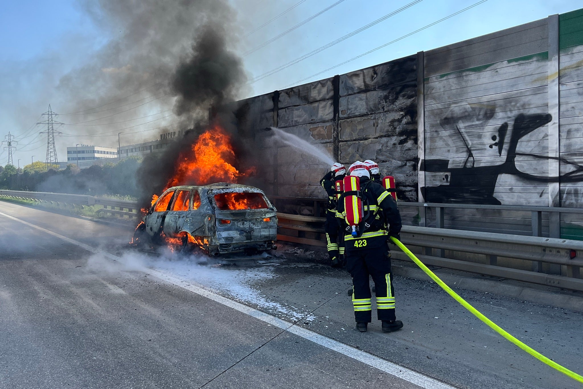 Die Flammen griffen auch auf eine Lärmschutzwand über. Die Feuerwehr Wiener Neudorf sowie die Berufsfeuerwehr Wien konnten den Brand unter schwerem Atemschutz bekämpfen. Danach wurde das ausgebrannte Wrack geborgen.
