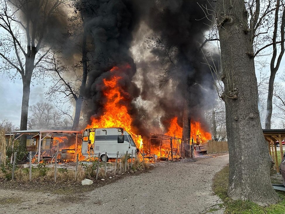 Vier Wohnwägen und ein Mobilwohnheim fast komplett zerstört - Explosion als mögliche Brandursache