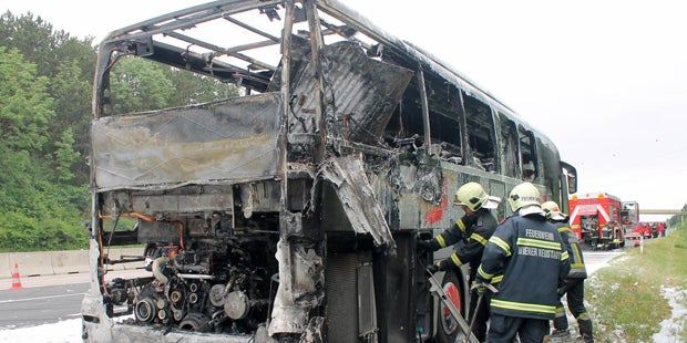 "Der Busfahrer und ein Ersatzlenker haben noch versucht, den Brand mit einem Feuerlöscher zu bekämpfen, was ihnen aber nicht gelang", sagte der Sprecher. Laut Resperger war das Feuer im Motorraum des Busses, der sich im Heck befindet, ausgebrochen. Beim Eintreffen der Feuerwehr hatten die Flammen bereits auf die Karosserie übergegriffen. Der Brand wurde aber schließlich rasch unter Kontrolle gebracht.