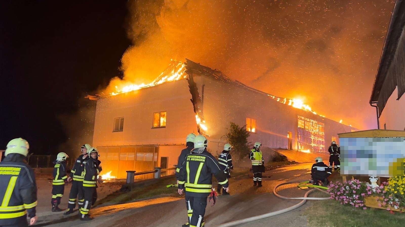 Im St. Pöltner Stadtteil St. Georgen sind 14 Feuerwehren in der Nacht auf Mittwoch zum Großbrand eines Bauernhofs ausgerückt. Der Feuerschein beim gegen 23 Uhr ausgebrochenen Brand war am Nachthimmel weithin sichtbar. Beim Eintreffen der Helfer waren die Gerätescheune, die Lagerhalle und der Wirtschaftstrakt bereits in Vollbrand.