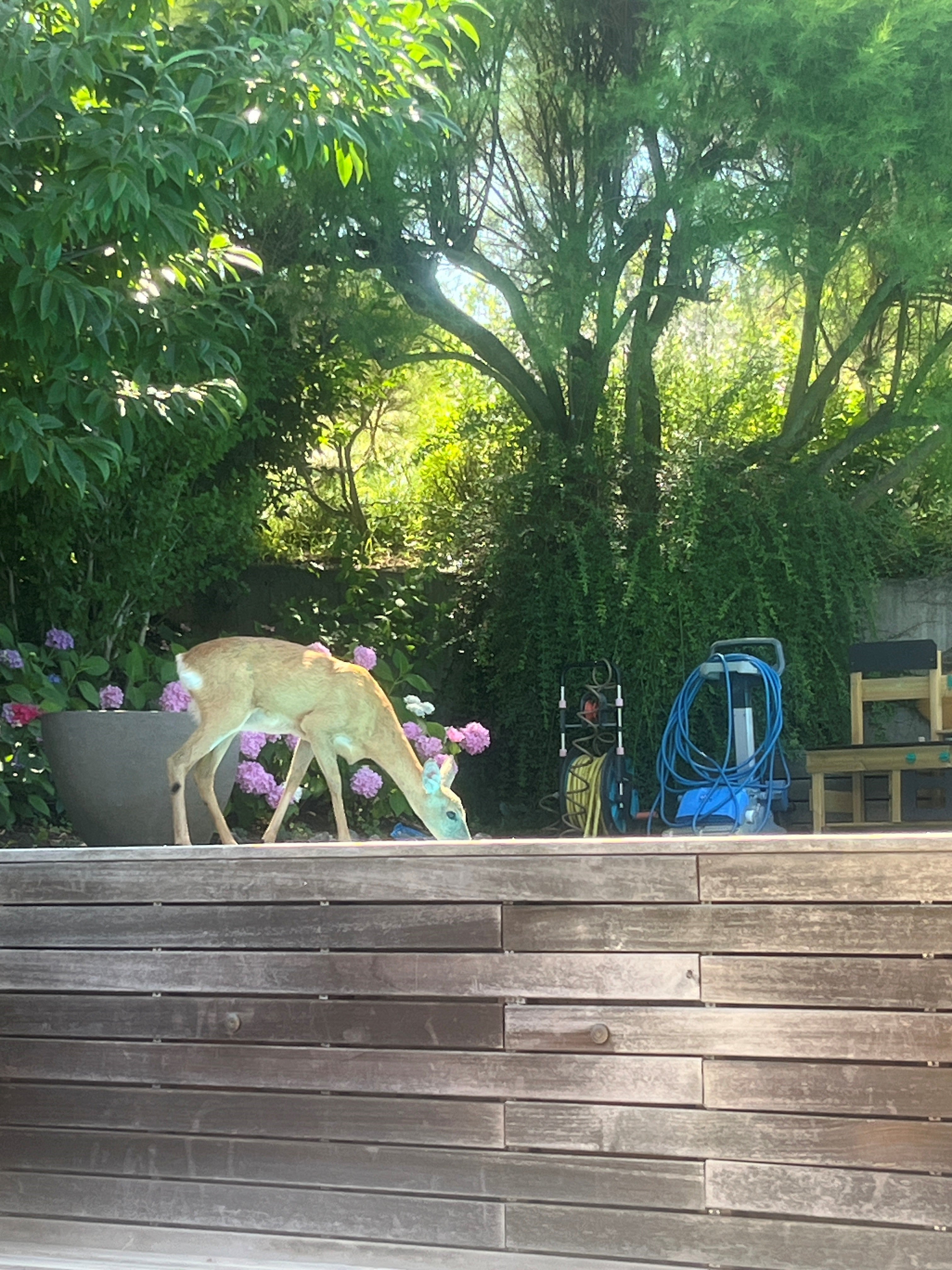 In Klosterneuburg stieg das Thermometer am Sonntag über 30 Grad. Die Sonne brannte vom Himmel, viele Menschen suchten Zuflucht im Schatten oder genossen die Hitze mit den Füßen im Wasser und einem kalten Getränk in der Hand. In einem dieser Gärten traute eine Familie ihren Augen kaum, als plötzlich ein Reh auf das Grundstück spazierte.