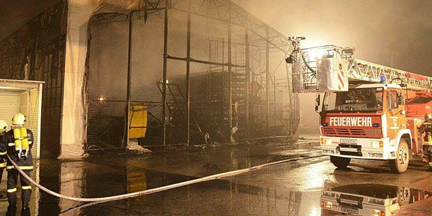 Gabelstapler defekt - Reifenlager-Halle brannte vollstandig ab.