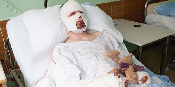 Wie eine lebendige Mumie liegt Martin B. jetzt im Landesklinikum Neunkirchen. Der Angestellte zog sich beim Horror-Absturz Brüche, Prellungen und Schürfwunden zu. Durch die Bandagen hindurch sagte er: „Ich sehe zwar aus wie eine Mumie, aber es geht mir gut, ich bin froh, dass ich lebe.“