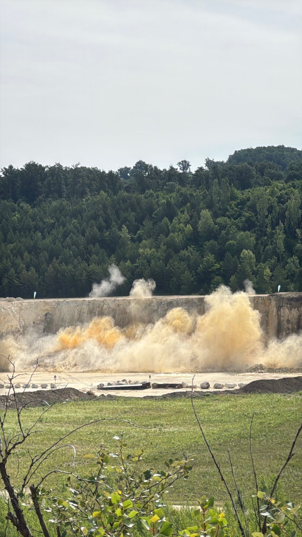 Im Juni hat das Holcim Zementwerk in Mannersdorf, Österreichs größte derartige Anlage, an drei Terminen die Tore seines Steinbruchs für Schausprengungen vor Publikum geöffnet. Weit mehr als 200 Gäste, darunter Schulklassen und Mitglieder von Pensionistenvereinen, konnten bei den "explosiven" Vorführungen Einblick in die Welt der Rohstoffgewinnung für die Zementproduktion nehmen.
