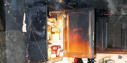 fünften Stock des 16-geschossigen Hauses war eine Küche in Vollbrand