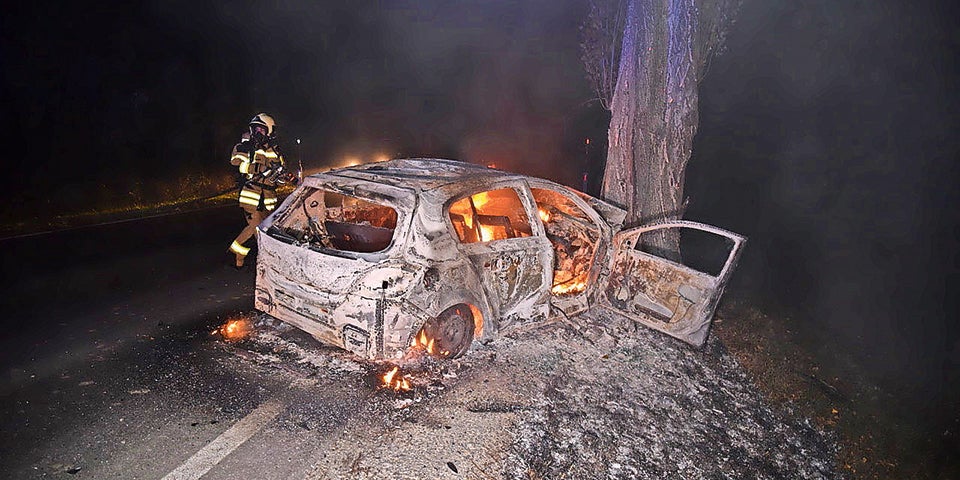 umgehend Alarm. „Bei Eintreffen an der Unfallstelle war der Pkw bereits völlig ausgebrannt, für den Lenker kam jede Hilfe zu spät“, sagte Michael Ditzer, Einsatzleiter der Feuerwehr.
