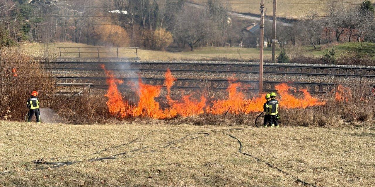 Über hundert Feuerwehrleute standen am Samstag entlang der Südbahn im Streckenabschnitt zwischen Gloggnitz, Eichberg und Aue bei Schottwien (Bezirk Neunkirchen) beim alljährlichen "Brandstreifenheizen" im Einsatz. Es handelt sich dabei um ein kontrolliertes Abbrennen trockener Wiesen und Böschungen im Umfeld der Bahnstrecke, um die Brandgefahr durch den Funkenflug der Zugbremsen zu vermindern. Das Brandstreifenheizen findet jedes Frühjahr in Zusammenarbeit mit den ÖBB statt.