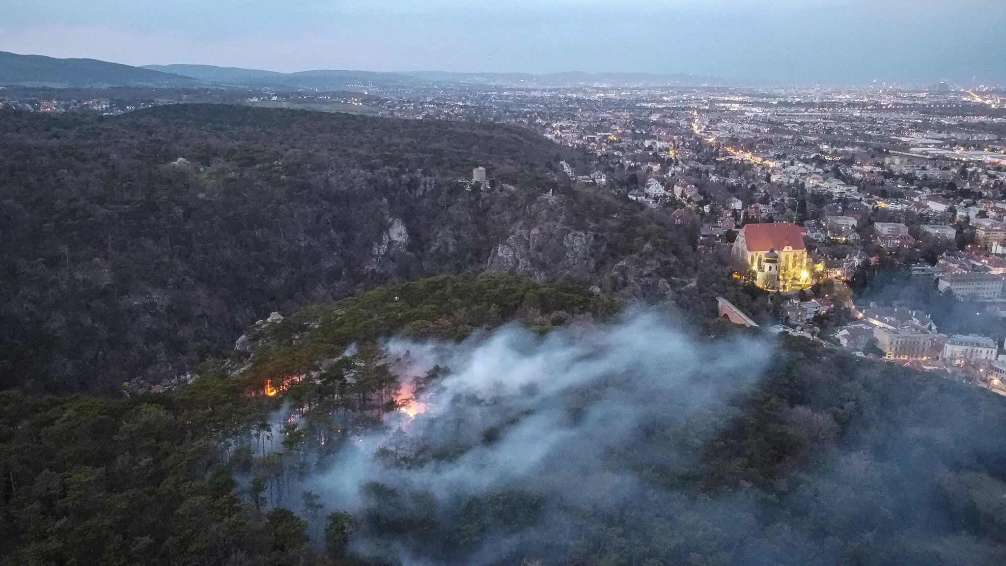 Alarmiert worden waren die Einsatzkräfte am Donnerstag gegen 19.00 Uhr. Eine Rauchsäule war laut Feuerwehr Mödling weithin zu sehen, böiger Wind fachte die Flammen an. Hinzu kam, dass das oberhalb der Stadt gelegene Waldstück mit Fahrzeugen kaum erreichbar ist. "Aufgrund der Lage haben wir in den ersten zehn Minuten entschieden, dass eine Brandbekämpfung aus der Luft notwendig ist", sagte Einsatzleiter Peter Lichtenöcker.
