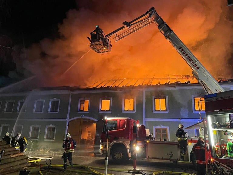 NÖ. In einem Vierkanthof in Brunnwiesen (Gemeinde Ruprechtshofen, Bezirk Melk) ist in der Nacht auf Sonntag ein Großbrand ausgebrochen. Die Flammen gingen laut Feuerwehr vom Dachstuhl aus. Die Bewohner konnten das Gebäude rechtzeitig verlassen und die Feuerwehr rufen. Als diese eintraf, stand der Vierkanthof bereits in Vollbrand, weshalb neun weitere Feuerwehren nachalarmiert wurden. Rund 200 Feuerwehrleute waren die ganze Nacht im Löscheinsatz.