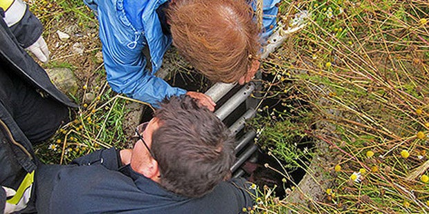 Tierbesitzerin musste von Feuerwehr aus Schacht befreit werden.