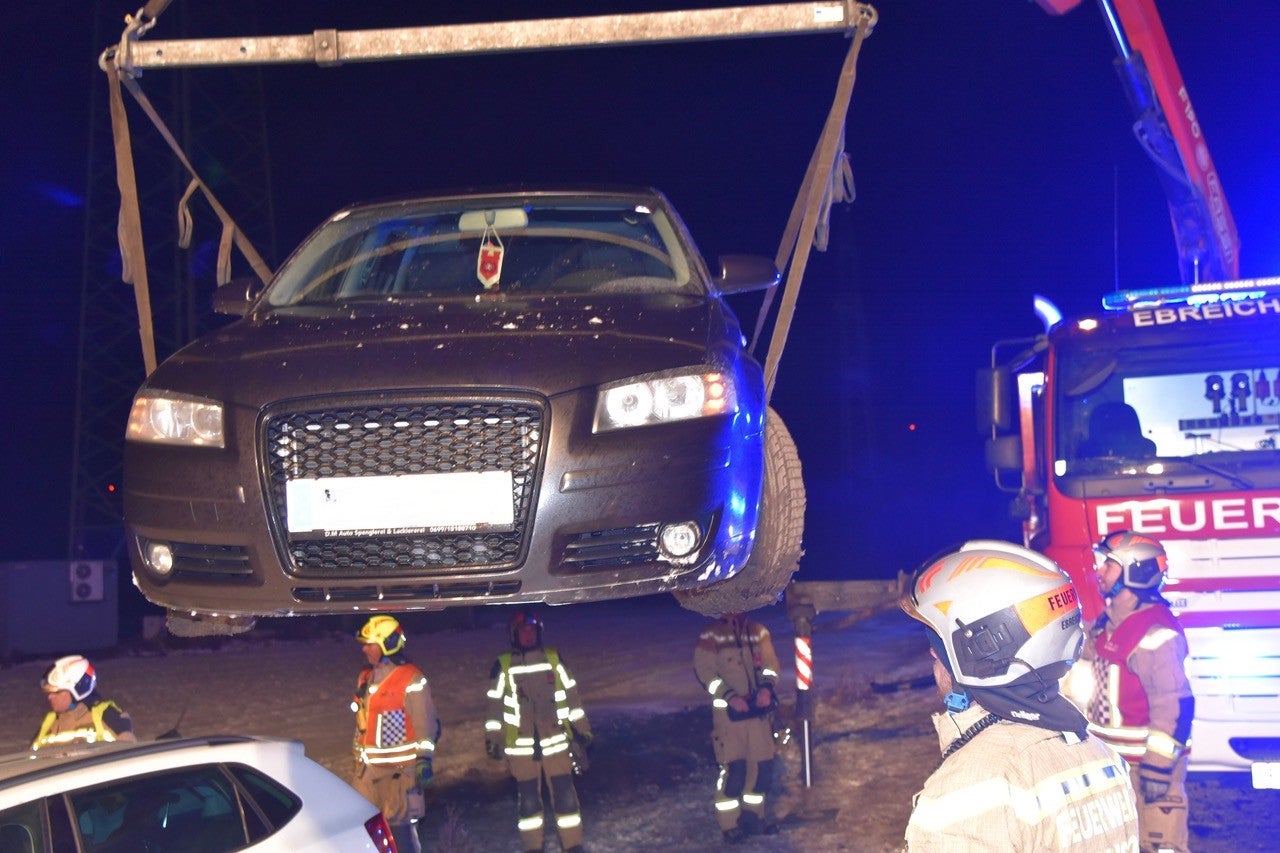 Statt die Feuerwehr zu alarmieren, rief er einen Freund an, der gemeinsam mit einem Bekannten versuchte das Fahrzeug wieder auf die Straße zurückzubringen. Die drei Männer waren gerade dabei einen Spanngurt am Unfallauto sowie am Auto des Freundes zu befestigen, als plötzlich ein dritter Pkw auf der Straße mit hoher Geschwindigkeit auf sie zukam.