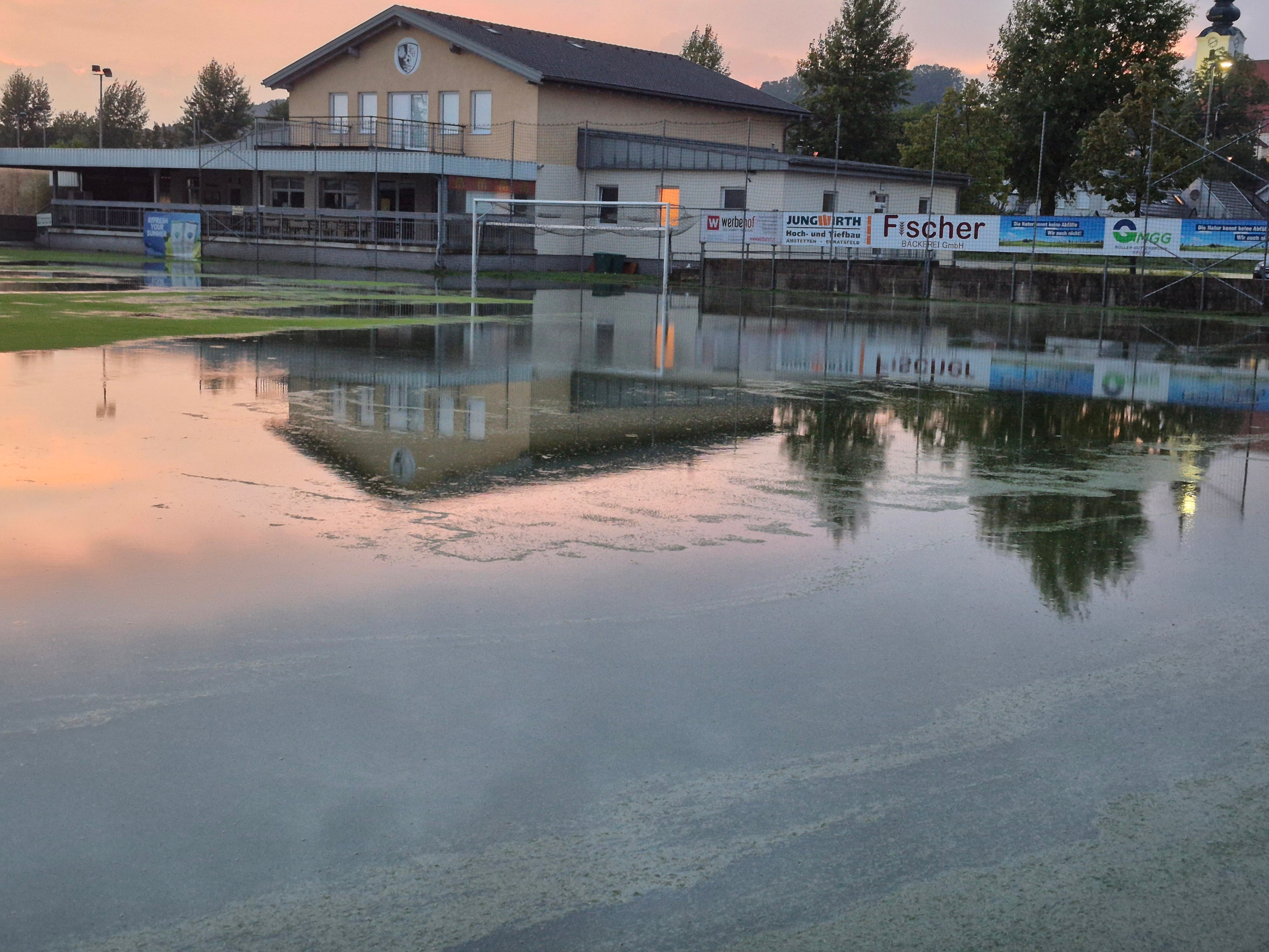 Eine Gewitterfront mit Starkregen hat Samstagabend bis Sonntag in der Früh zu rund 50 Feuerwehreinsätzen in Niederösterreich geführt. Besonders betroffen war die Region rund um St. Georgen am Ybbsfelde, wo es zu mehreren Überschwemmungen kam. In zahlreichen Einfamilienhäusern standen Keller unter Wasser und mussten von den Einsatzkräften ausgepumpt werden. Auch der örtliche Fußballplatz in St. Georgen am Ybbsfelde wurde stark in Mitleidenschaft gezogen – das Spielfeld stand stellenweise bis zu 30 Zentimeter unter Wasser.