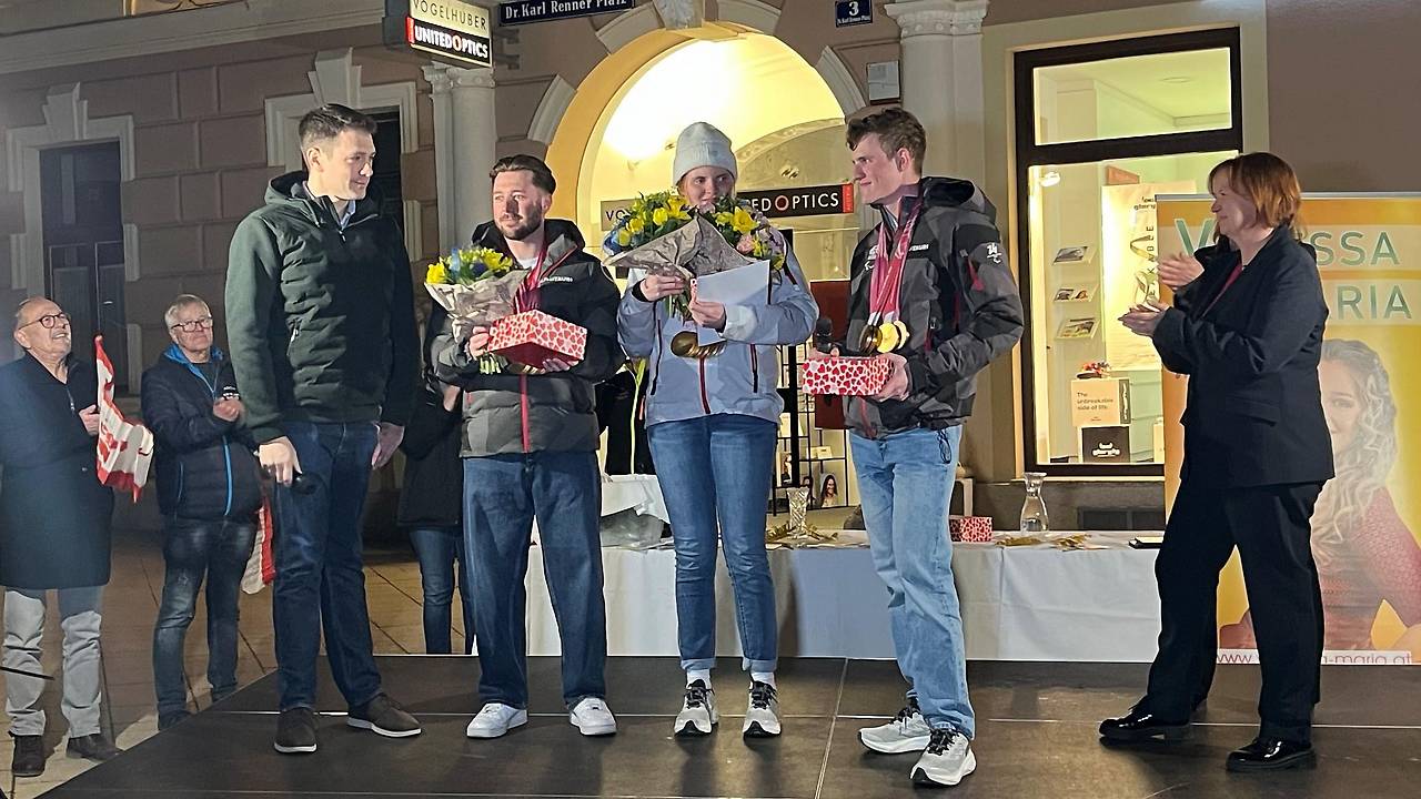 Begleitet von Musikkapelle und Schlagersängerin Vanessa Maria präsentierten Veronika, Johannes Aigner und Guide Nico Haberl stolz ihre insgesamt zehn paralympischen Goldmedaillen. Dazu gab es Autogramme, Erinnerungsfotos und jede Menge Jubel. Bereits zuvor hatte Trattenbach die Parasport-Stars gefeiert.