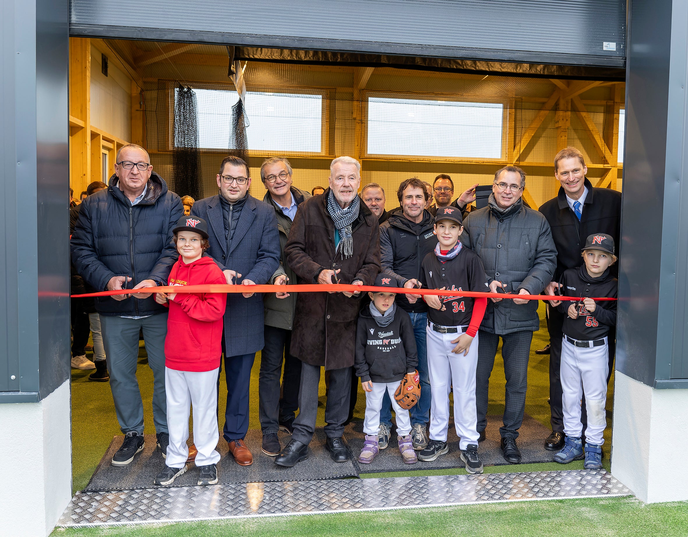 Feierliche Eröffnung nach drei Monaten Bauzeit und über 2.000 ehrenamtlichen Arbeitsstunden für die moderne Indoor Facility-Halle am Ducksfield am Zehnergürtel. So können die Spielerinnen und Spieler künftig ganzjährig Schlag- und Pitchingtrainings absolvieren.