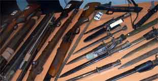 sichergestellt wurde, darunter zwei Maschinengewehre und drei