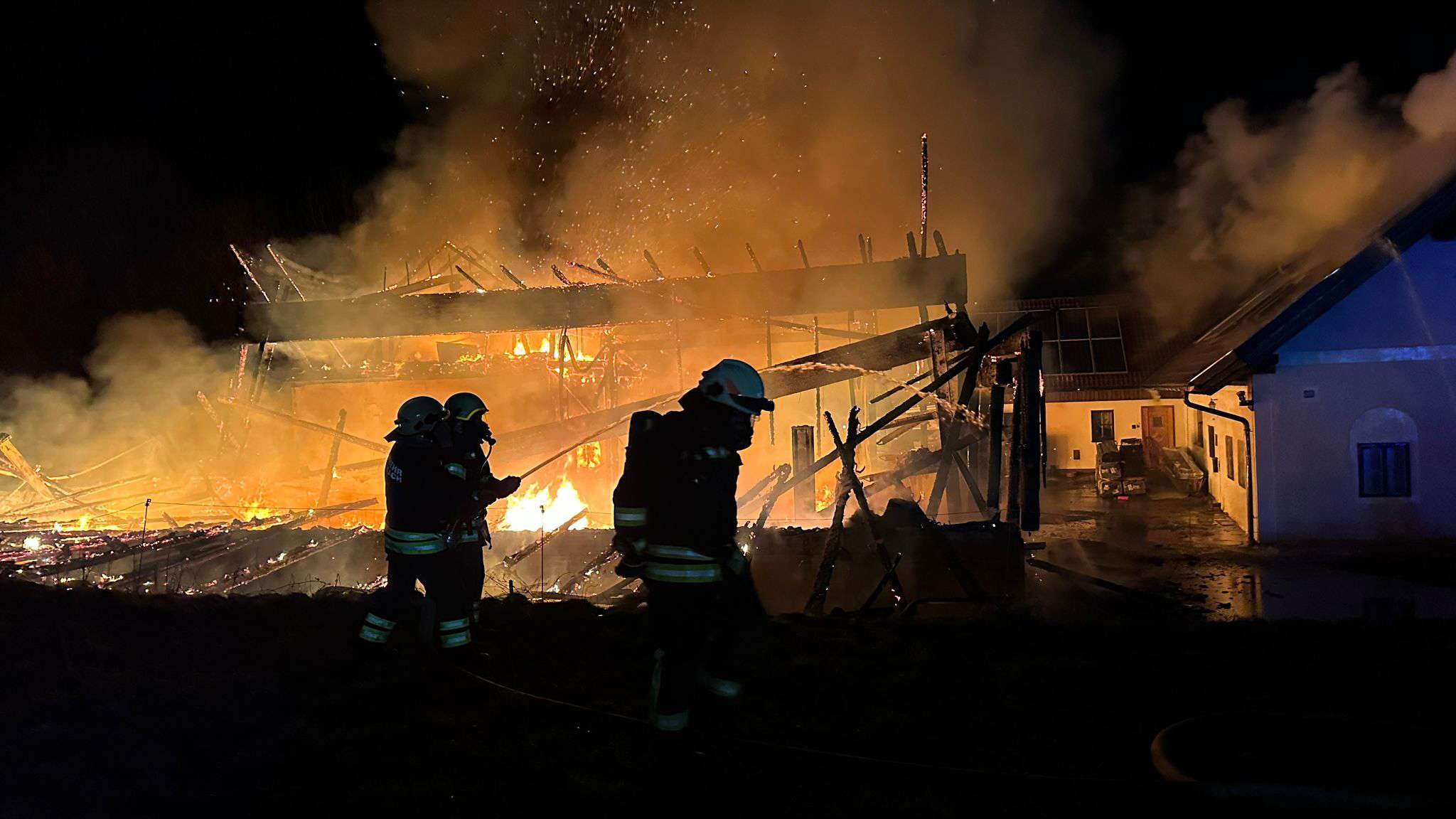 Nach ersten Informationen stand ein Stadl in Flammen, in dem mehrere Fahrzeuge mit alternativem Antrieb abgestellt waren. Die Florianis versuchen aktuell ihr Bestes, um ein Ausbreiten des Feuers auf umgrenzende Gebäude zu verhindern. Wie Bilder vom Einsatzort zeigen, ist das betroffene Gebäude bereits vollständig niedergebrannt.