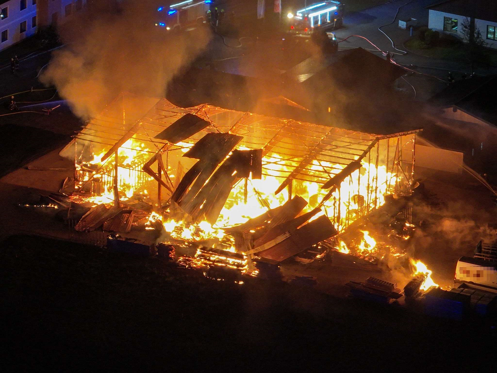 Beim Eintreffen der Feuerwehr in Steingrub kurz nach Mitternacht stand die Lagerhalle eines Betriebes bereits in Vollbrand. Ein Übergreifen des Feuers auf eine rund sieben Meter entfernte Spenglerei konnte verhindert werden. "Die Fenster eines gegenüberliegenden Wohnhauses sind durch die Hitze geborsten", sagte Waxenegger.