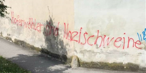 Neuester Tiefpunkt ist eine Schmiererei an der Kirchenmauer von Neulengbach. "Hoferwähler sind Nazischweine" steht dort in großen roten Buchstaben. Von wem die Beleidigung ist, ist derzeit noch nicht bekannt.