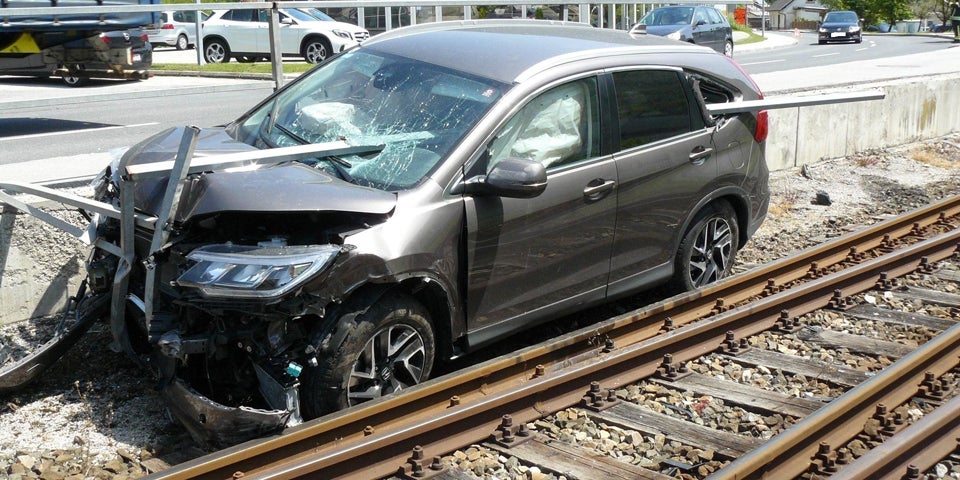 Pkw durchstieß Geländer und blieb neben Bahngleisen stehen. Der Fahrer wurde wie durch ein Wunder nur leicht verletzt.