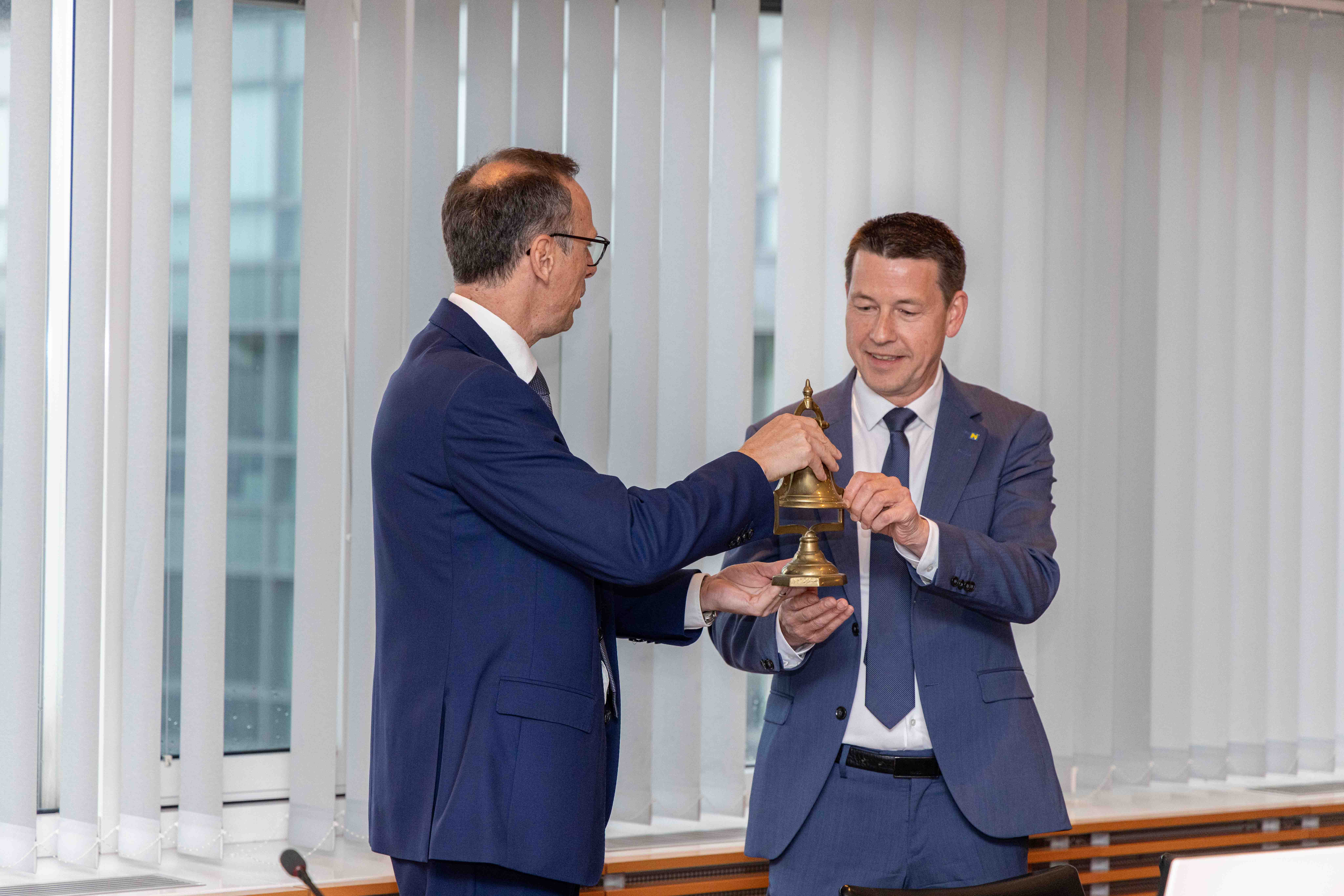 Mit der traditionsreichen Klubglocke in der Hand übergab Jochen Danninger die Verantwortung für den Landtagsklub der Volkspartei Niederösterreich an Kurt Hackl.