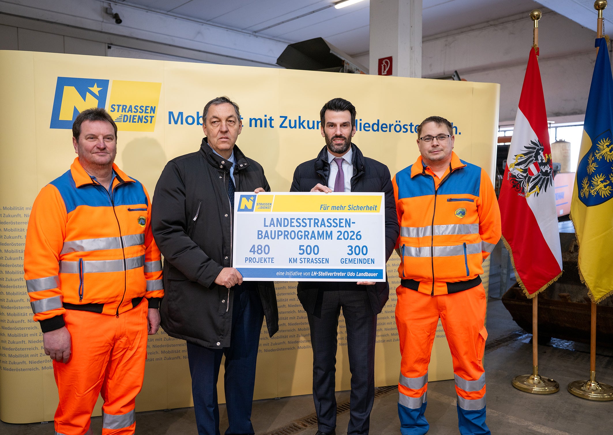 In der Straßenmeisterei Pottenbrunn informierte heute Verkehrslandesrat und LH-Stellvertreter Udo Landbauer (FPÖ) gemeinsam mit Straßenbaudirektor Josef Decker über die für 2026 geplanten Investitionen in das NÖ Landesstraßennetz.